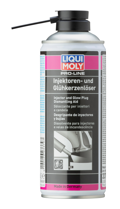 Heavy-duty solvent for seized injectors, glow and spark plugs. Undermines accumulated dirt and corrosion and enables easy removal. Outstanding cleaning properties allow stubborn oil residues, resinification and encrusted dirt to be removed easily.
